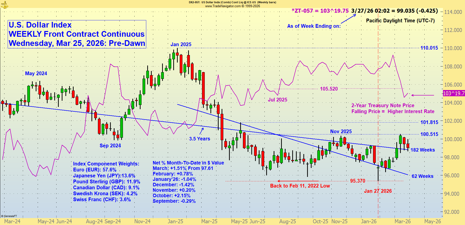 On June 12-13, 2025, the Russian government forced the U.S. Dollar off of Russia’s large central trading exchange (MOEX) in response to new international sanctions cutting Russia out of the “SWIFT” international trade settlement system. The Yuan is now designated as the Central Bank of Russia’s “Benchmark” currency. Anyone in Russia or dealing with Russia who wishes to use the USD for trade must use interbank markets instead of open exchange trades on the MOEX to price Rubles or Dollars, making it significantly more expensive and less transparent. The direct effect on the Dollar Index is not large. There are rumors that Russia may be interested in switching back into the U.S. Dollar market as a package of incentives designed to encourage U.S. lifting of sanctions (see comments under “Ruble”).