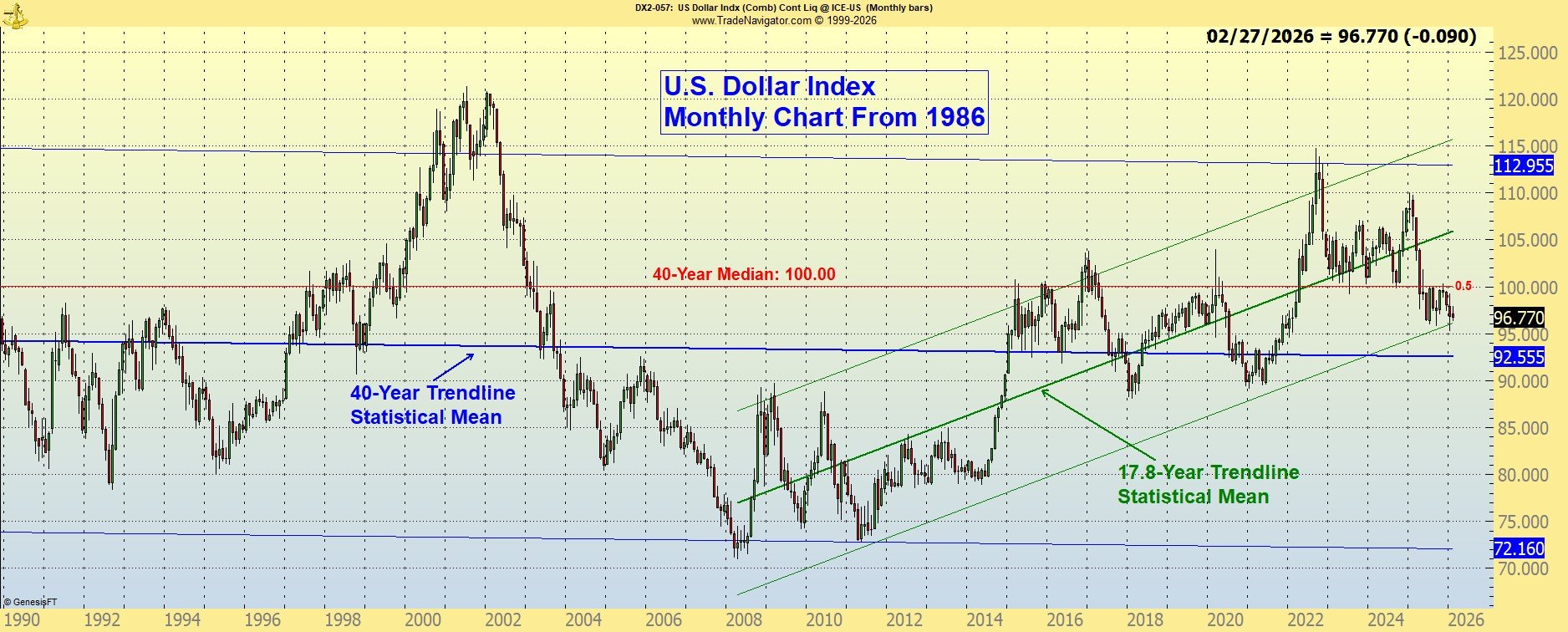U.S. Dollar Index - Weekly and Long-Term Monthly