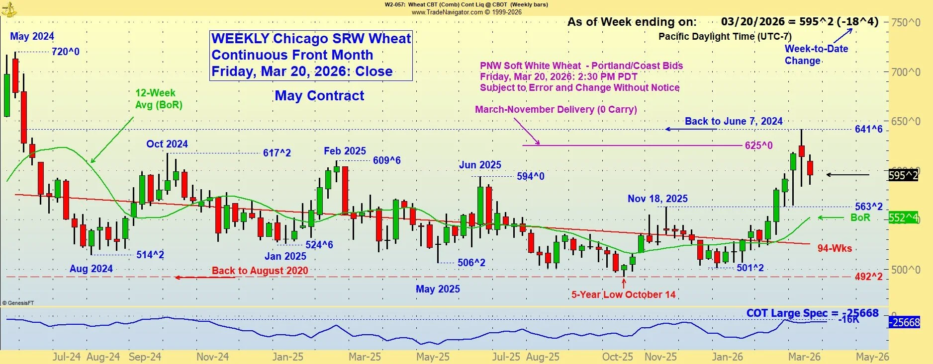Best estimate of duration of the Israel-Iran-U.S. war is “several weeks to two months.” That puts us into mid-May. There is a convergence of wheat market factors in this timeframe, often called “The Silly Season”. The new crop emergence and early harvesting, along with the effects of drought in major areas of the northern hemisphere are always a risk-on seasonal force in the markets. Volatility is bound to increase, even more than we have seen already. Marketing in this environment requires thoughtful and deliberate decisions, hopefully based on reliable measurements and plans prepared under quiet, low-stress conditions in advance.