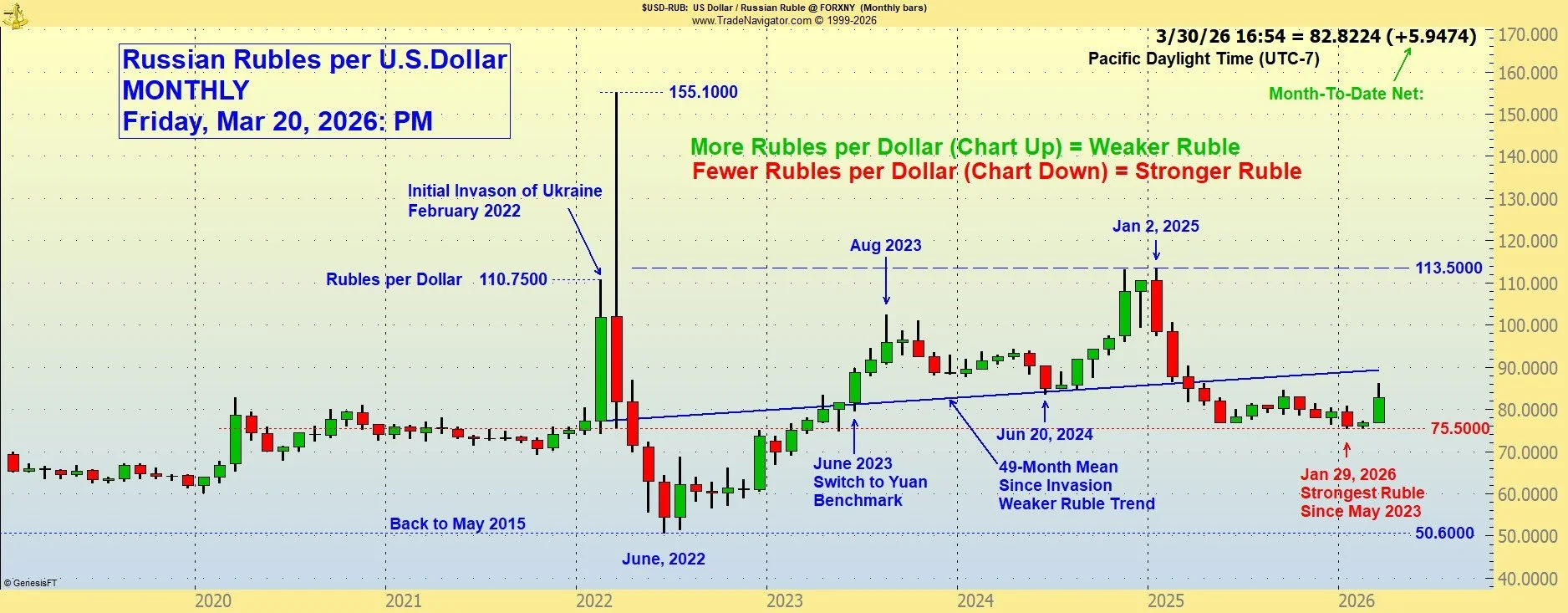 Russian Ruble - MONTHLY Futures Chart - Continuous Front Month