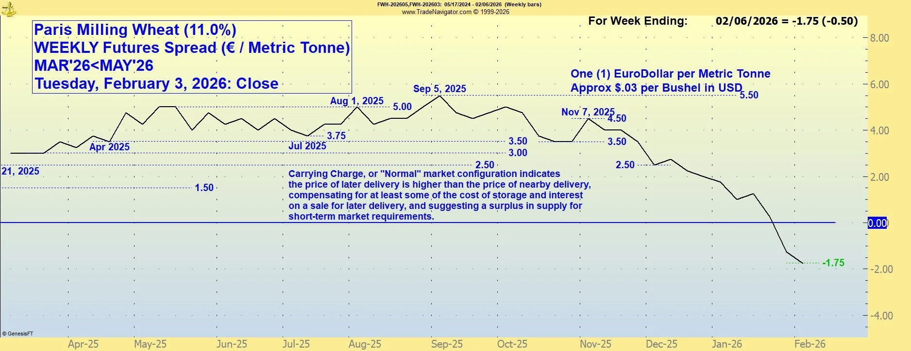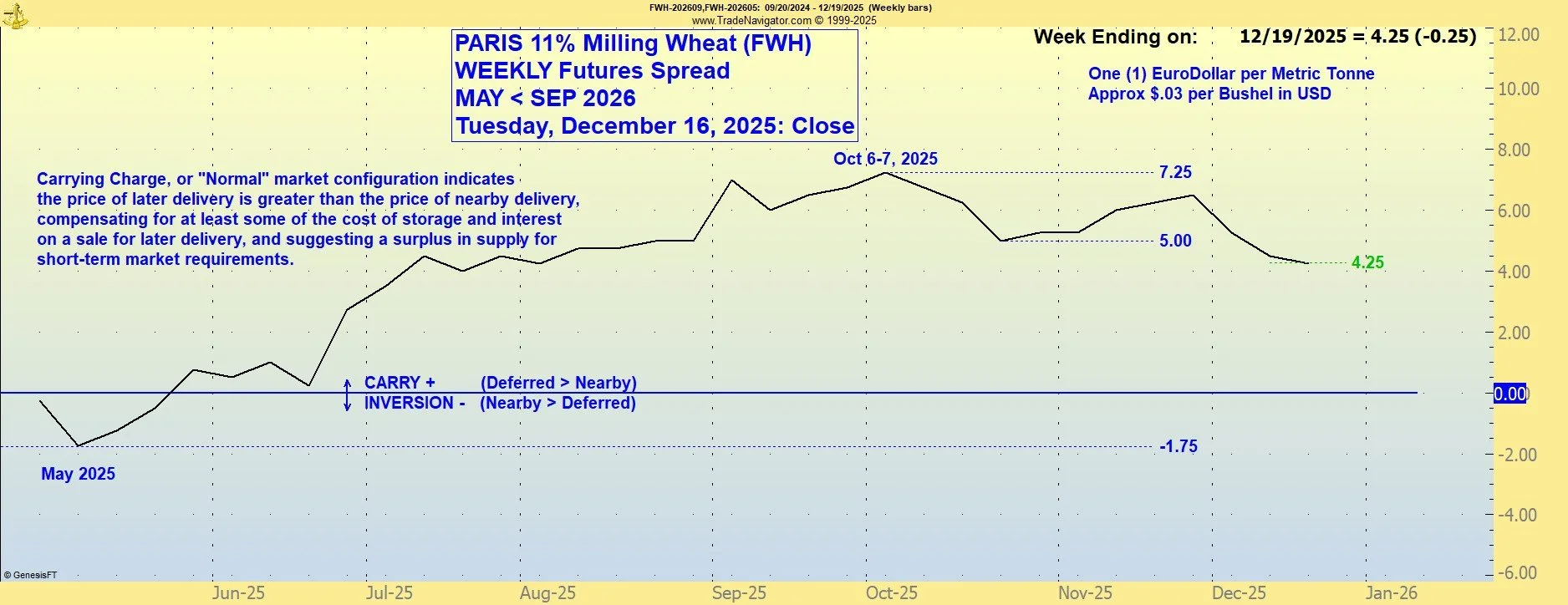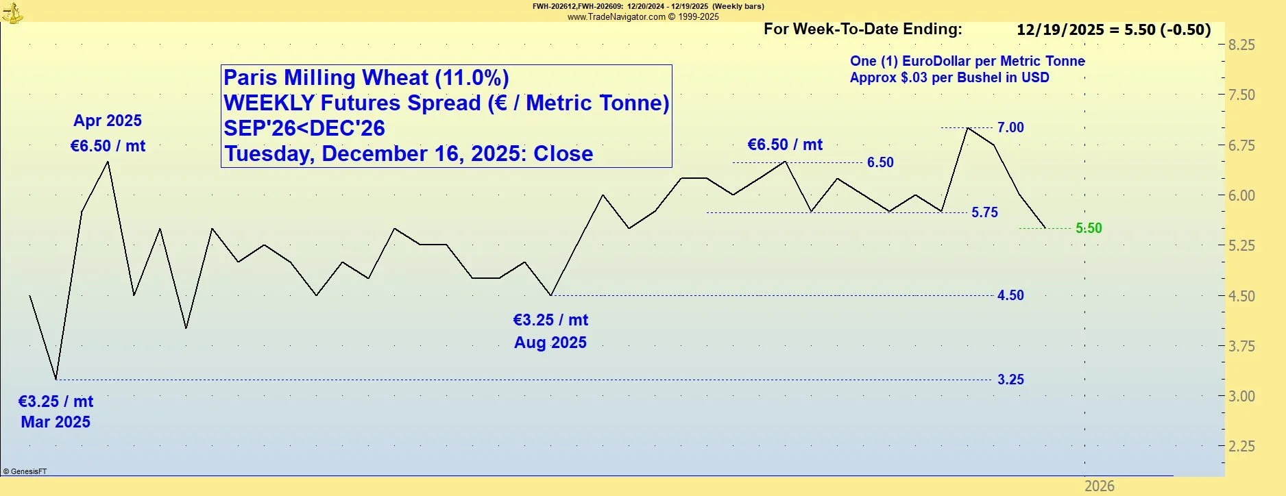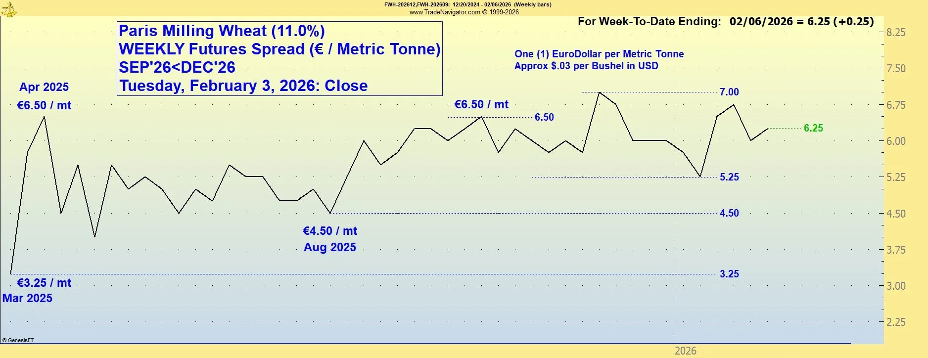 Weekly Futures Price Spreads Chicago SRW, KC HRW, MPLS HRS, Paris 11% Milling